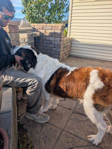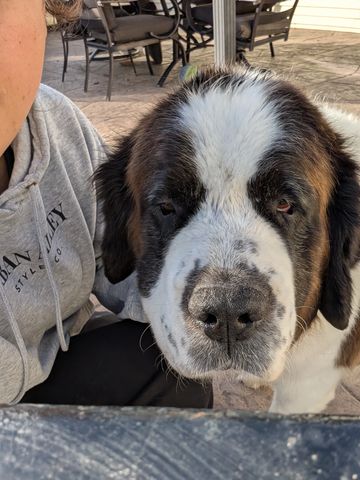 Heidi is looking for a retirement home. She is a big, healthy girl. She is a little over 6 years old. You should be familiar with large breed dogs or St Bernards, specifically. She is currently weighing about 110 pounds.